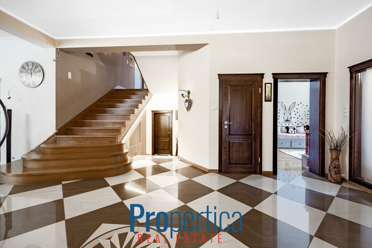 Przyziemie wykończone materiałami najwyższej jakości, parapety marmurowe,parkiet dębowy , wszystkie drzwi drewniane.