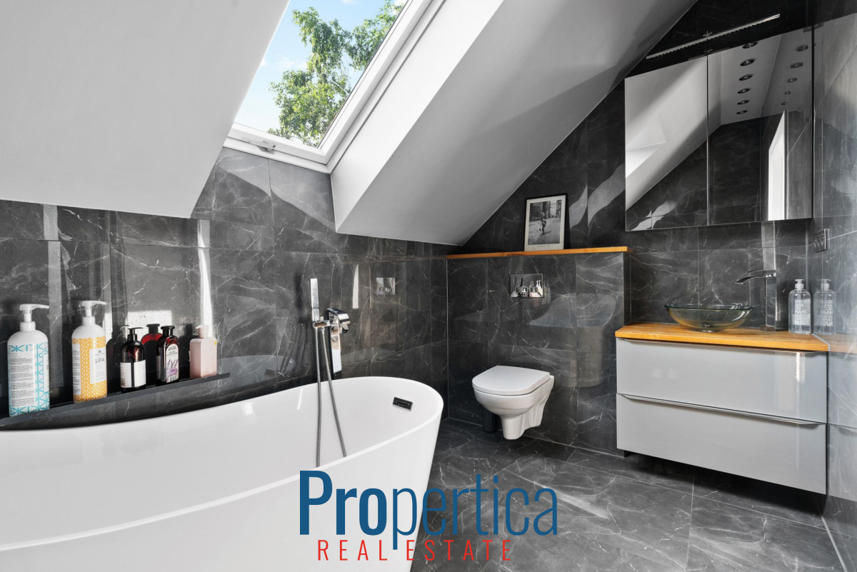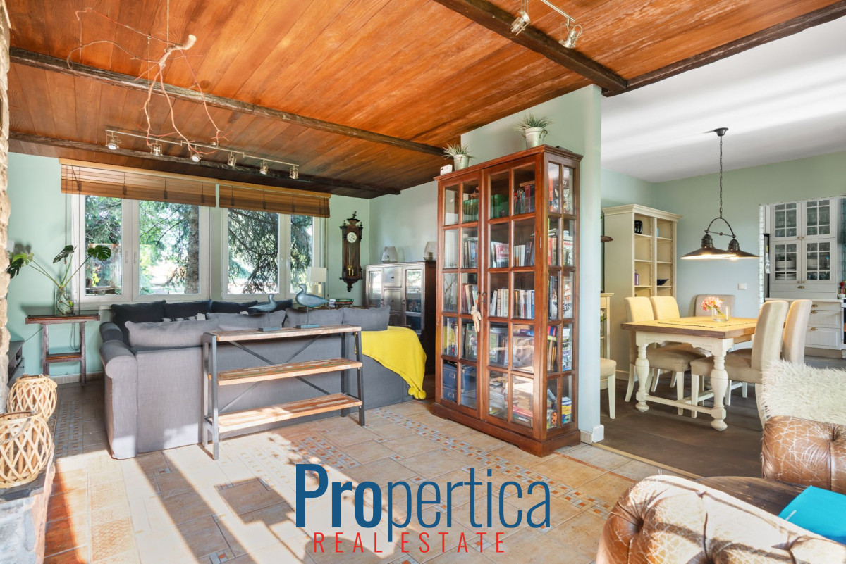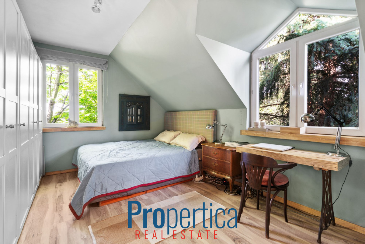 Niezaprzeczalnym atutem nieruchomości jest działka o powierzchni 2860 m² ze stawem i pięknymi wieloletnimi drzewami.