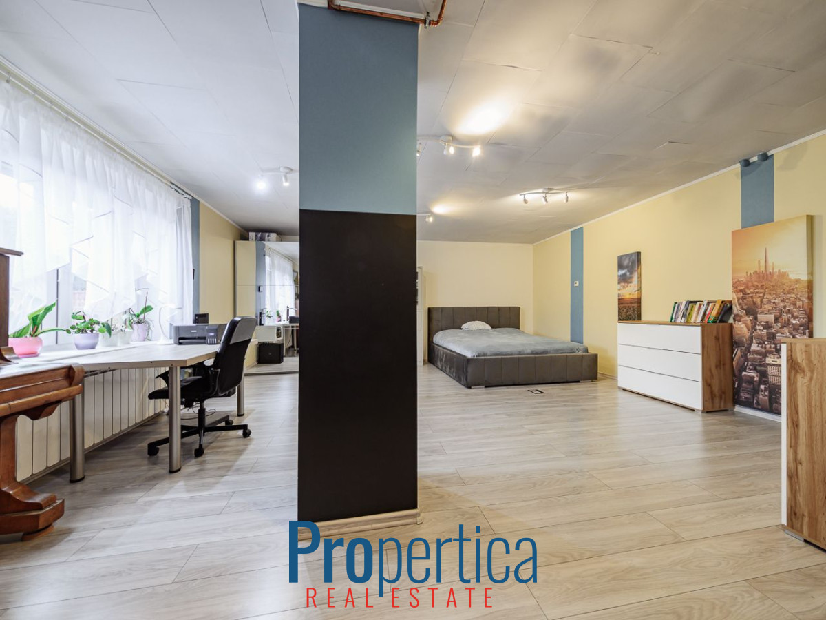 Na parterze znajduje się przestronne pomieszczenie z oddzielnym wejściem, łazienka z prysznicem i oddzielna toaleta. Przestrzeń ta może stanowić część mieszkalną (przestronny pokój z indywidualną łazienką), albo może stanowić oddzielne mieszkanie z indywidualnym wejściem (np. tzw. senioratkę dla członka rodziny). Przestrzeń ta może być również wykorzystana do pracy albo prowadzenia działalności gospodarczej (idealnie nadaje się np. na biuro rachunkowe, pracownie projektową).