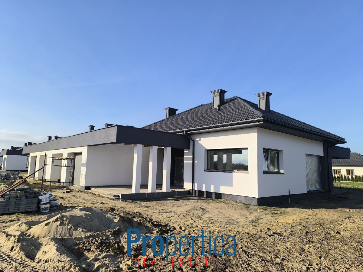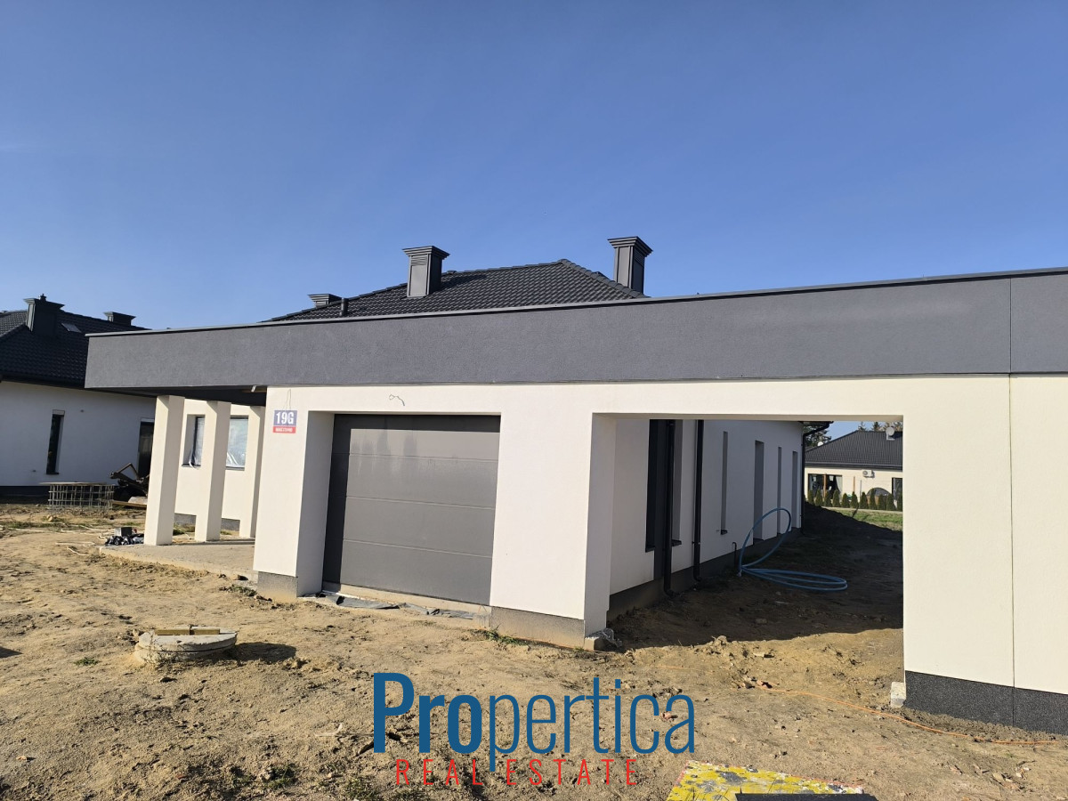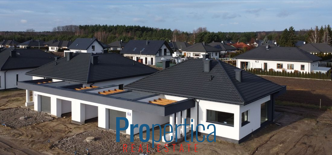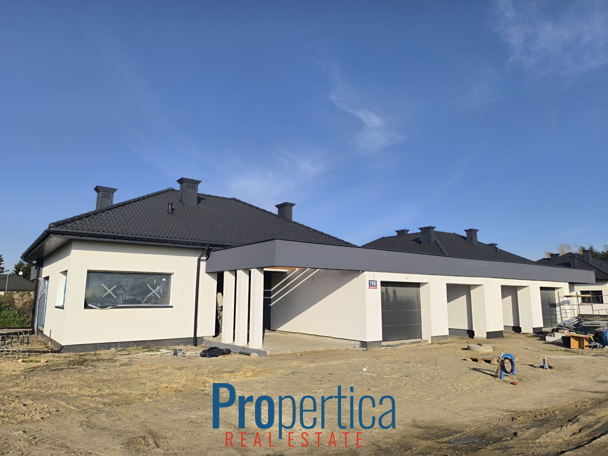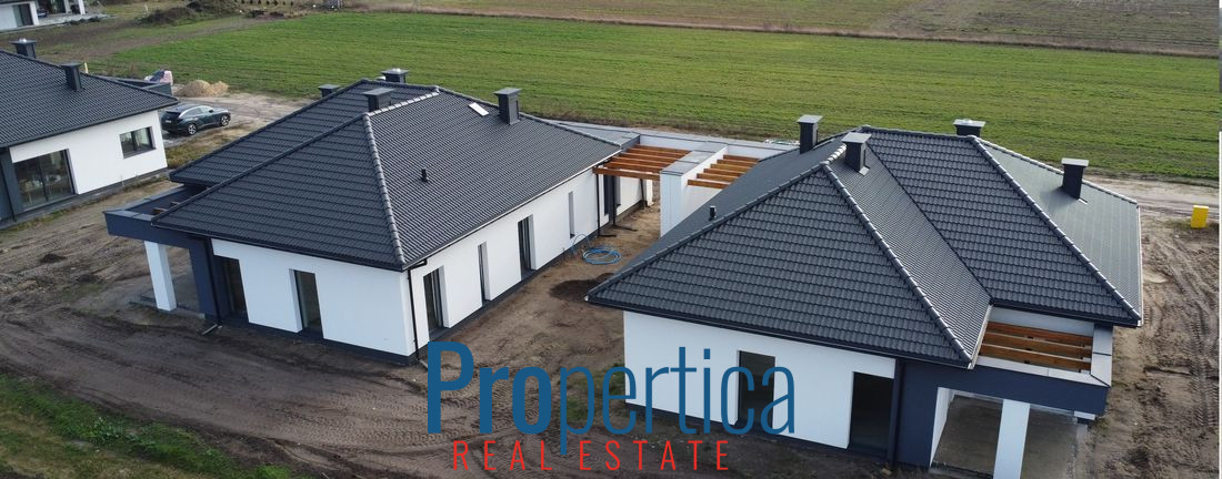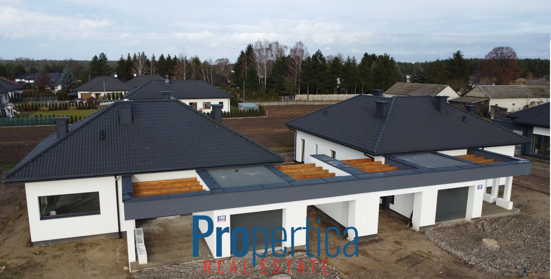 Mam przyjemność zaprezentować Państwu parterowe domy wolnostojące z 2025 r. o powierzchni 139,85 m² połączone ze sobą wiatami garażowymi.