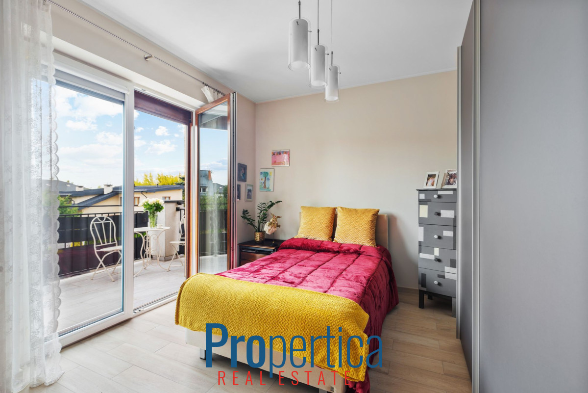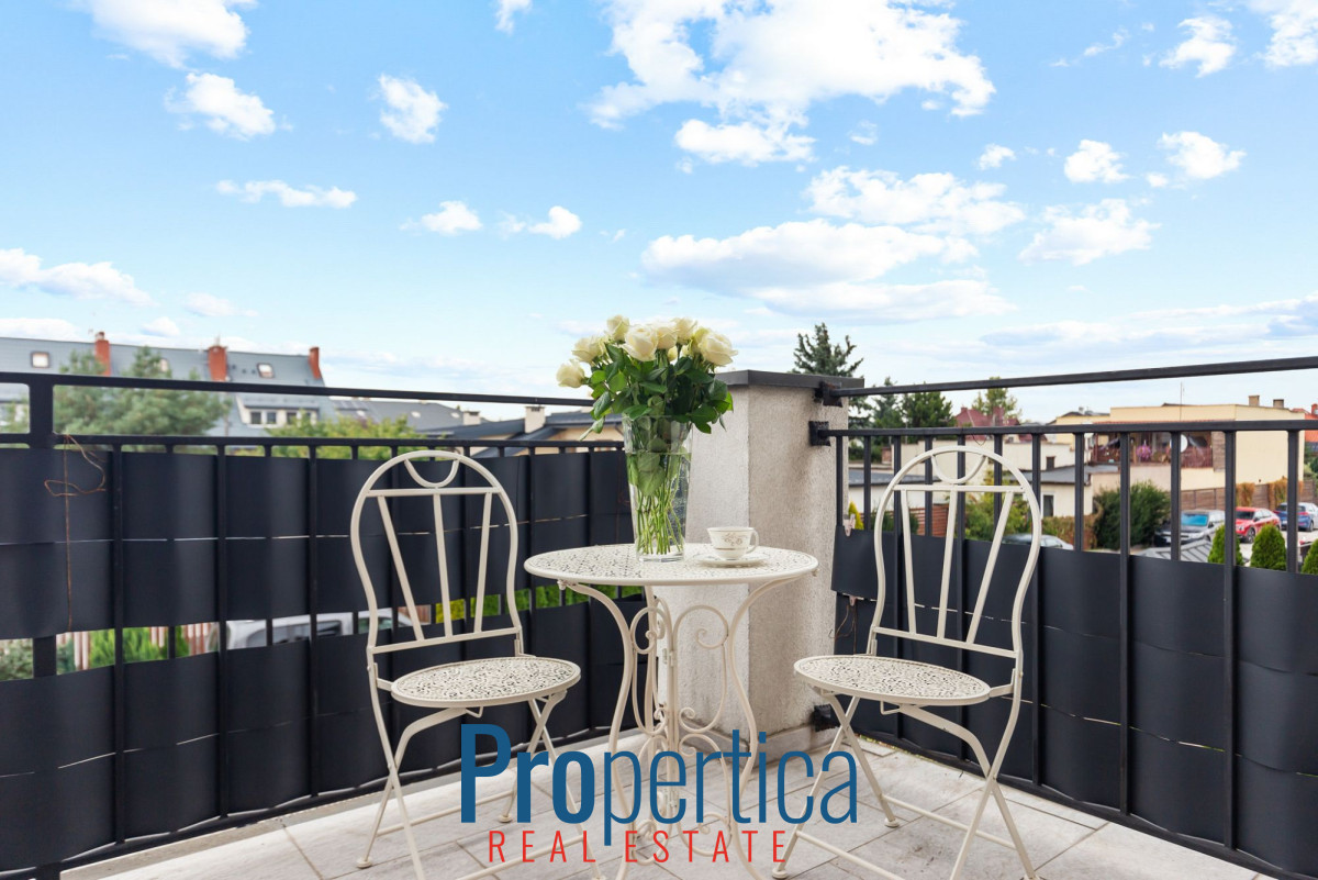 Na piętrze 2 balkony o pow. 10 m² i 7 m² (z każdej sypialni jest wyjście na balkon).