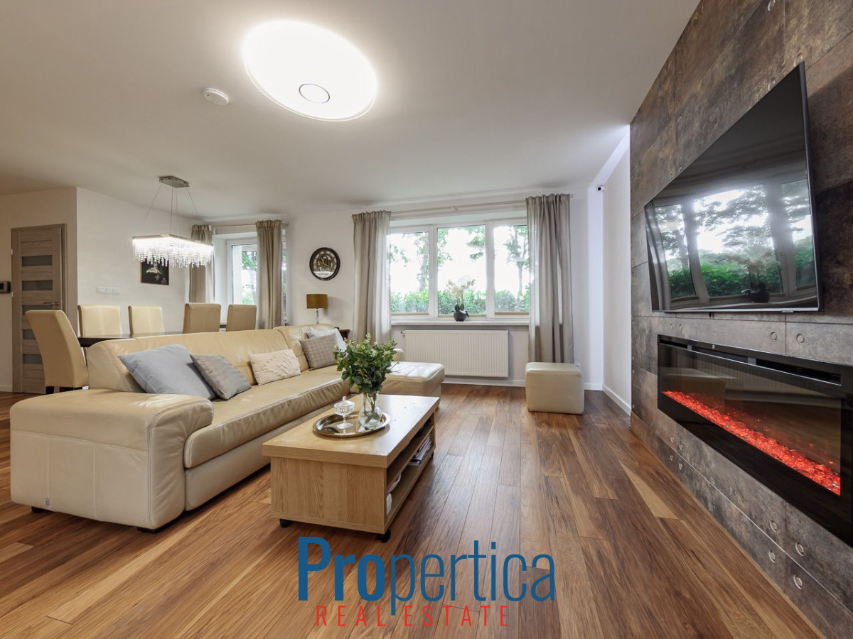 - przestronny i pełen światła salon z wyjściem do ogrodu