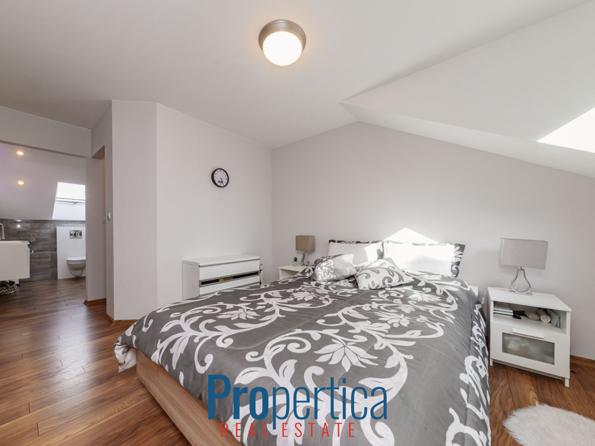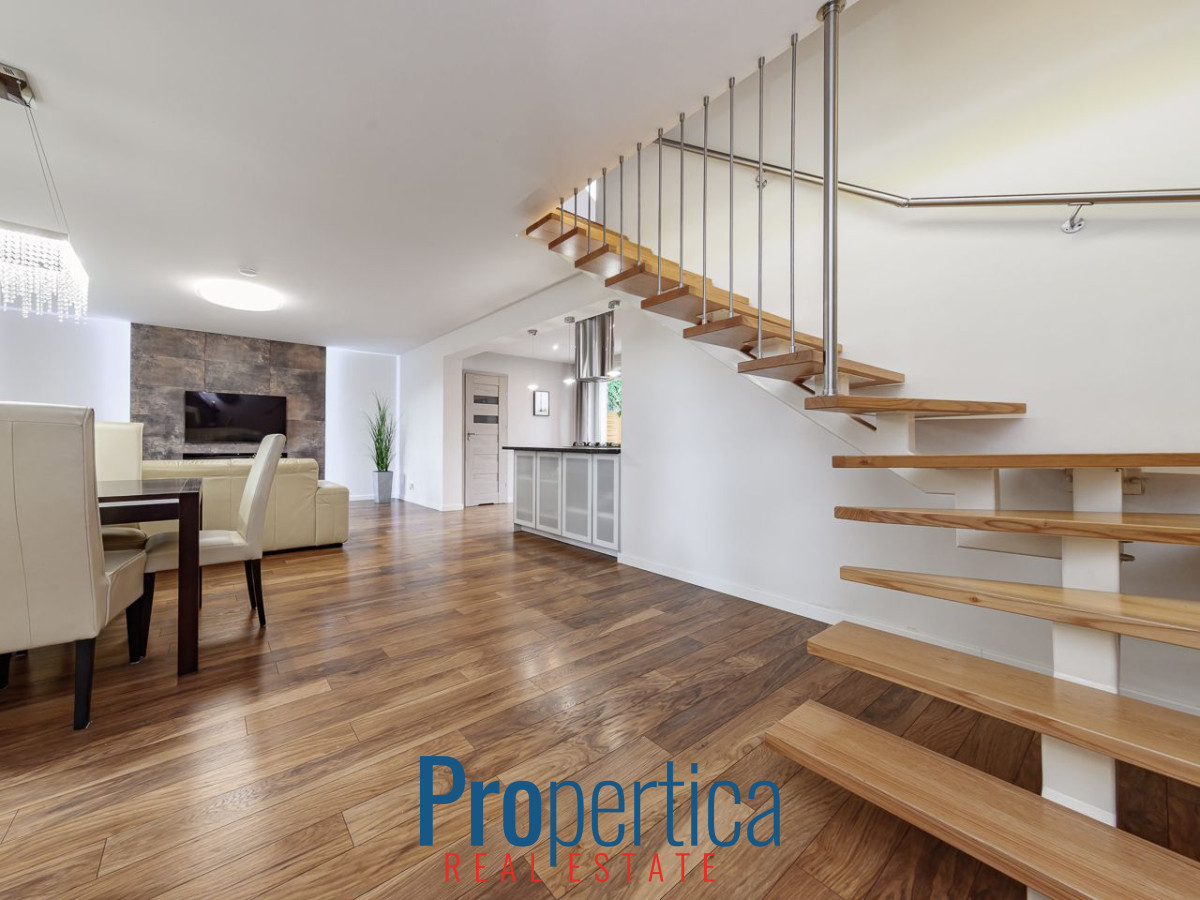 Dom posiada bardzo funkcjonalny układ, który pozwala na pełne i optymalne wykorzystanie jego powierzchni. Pomieszczenia są przestronne i ustawne oraz jasne dzięki dużej ilości okien. W domu znajduje się 5 pokoi, kuchnia, 3 łazienki, pomieszczenie gospodarcze, garderoba, garaż.