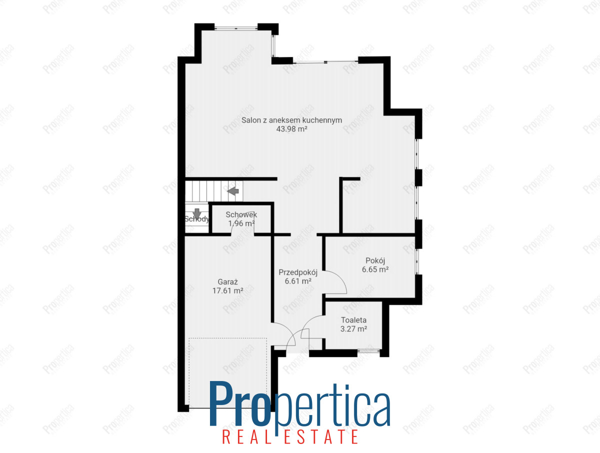 Dodatkowo wejście do garażu (17,61 m²) wraz z praktycznym schowkiem (1,96 m²)