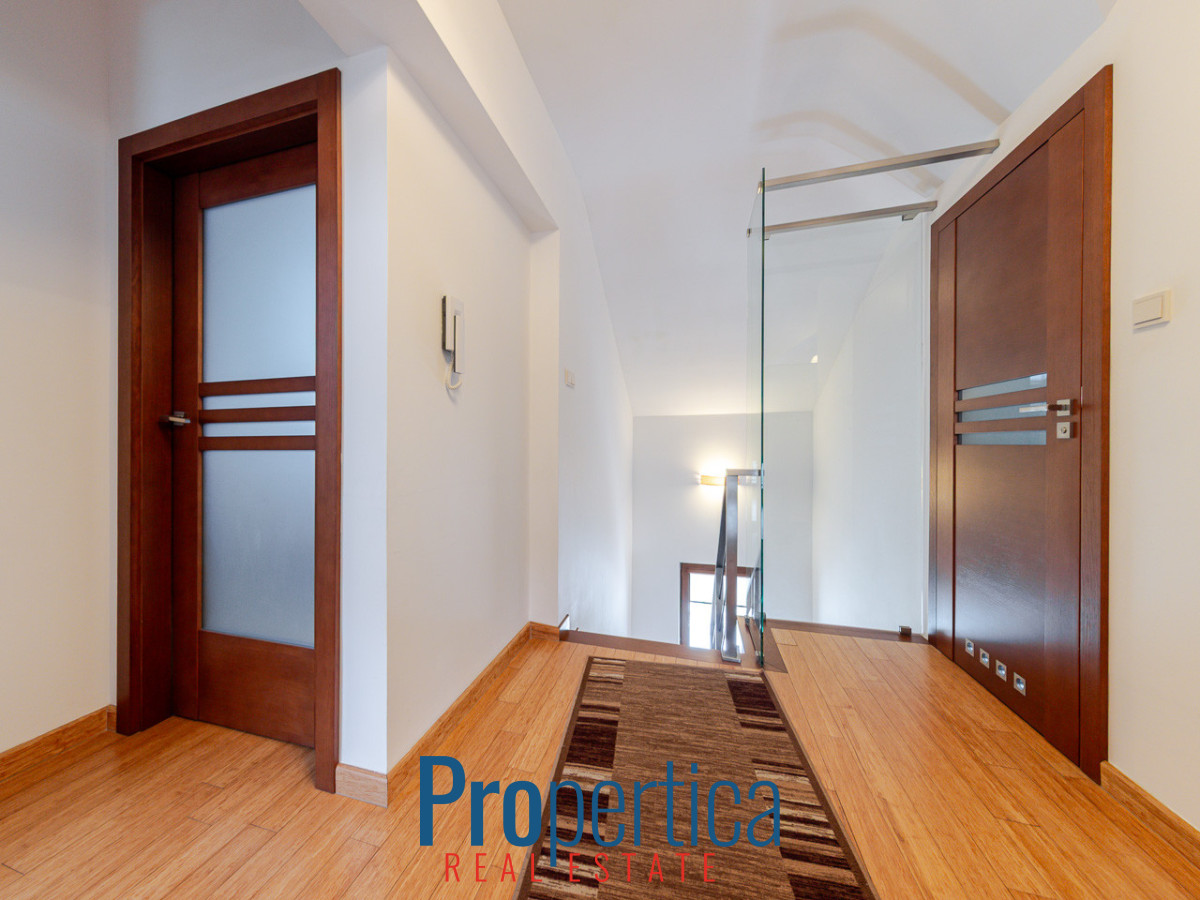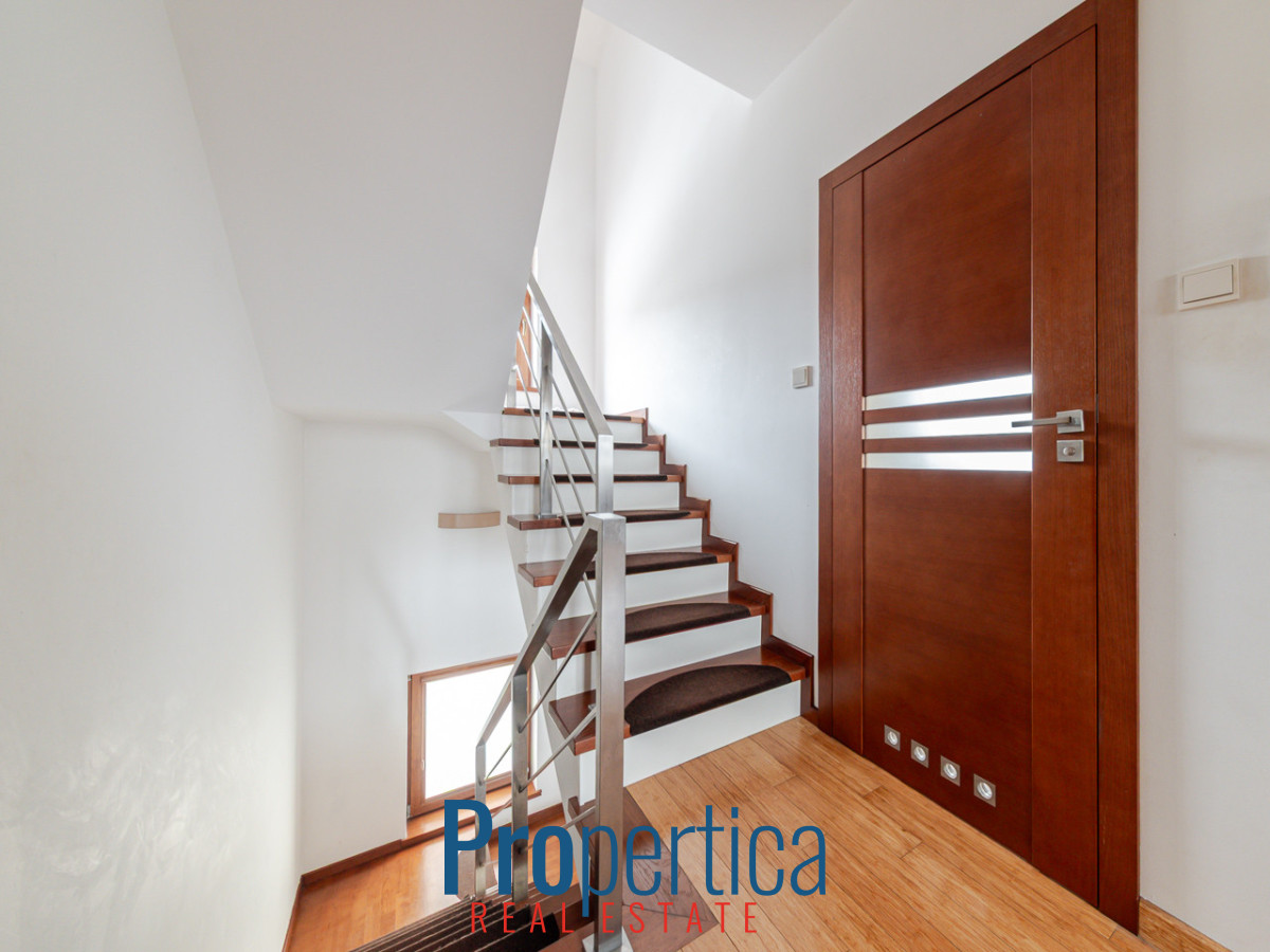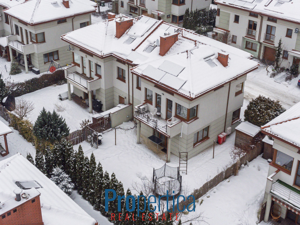 Dom zlokalizowany jest na zadbanym, kameralnym i zamkniętym osiedlu. Nieruchomość ma niezwykle funkcjonalny układ pomieszczeń co w połączeniu obszernym balkonem oraz przynależnym ogrodem sprawia, że jest to idealna przestrzeń dla życia i wypoczynku nawet dla bardzo wymagających rodzin. Należy też wspomnieć o nowoczesnej, estetycznej bryle budynku skrywającej solidną żelbetową konstrukcję