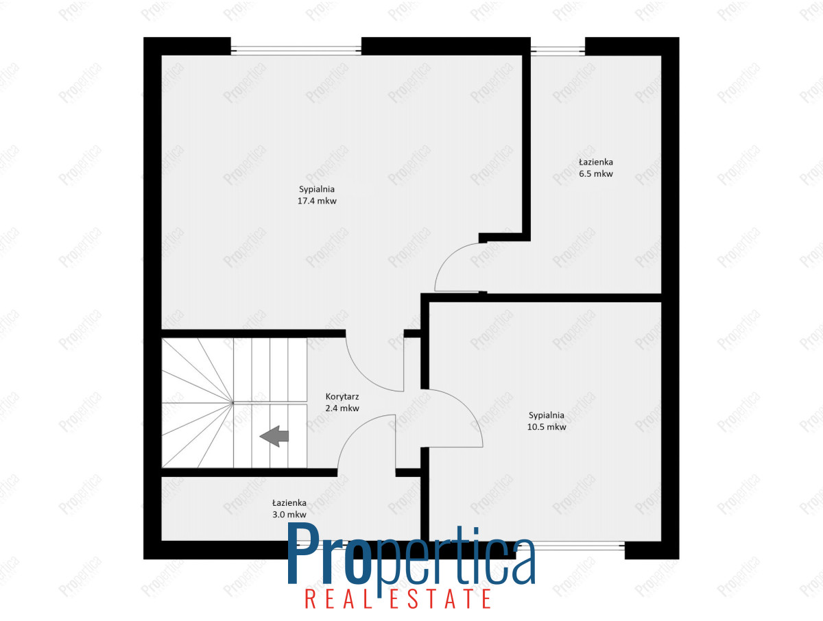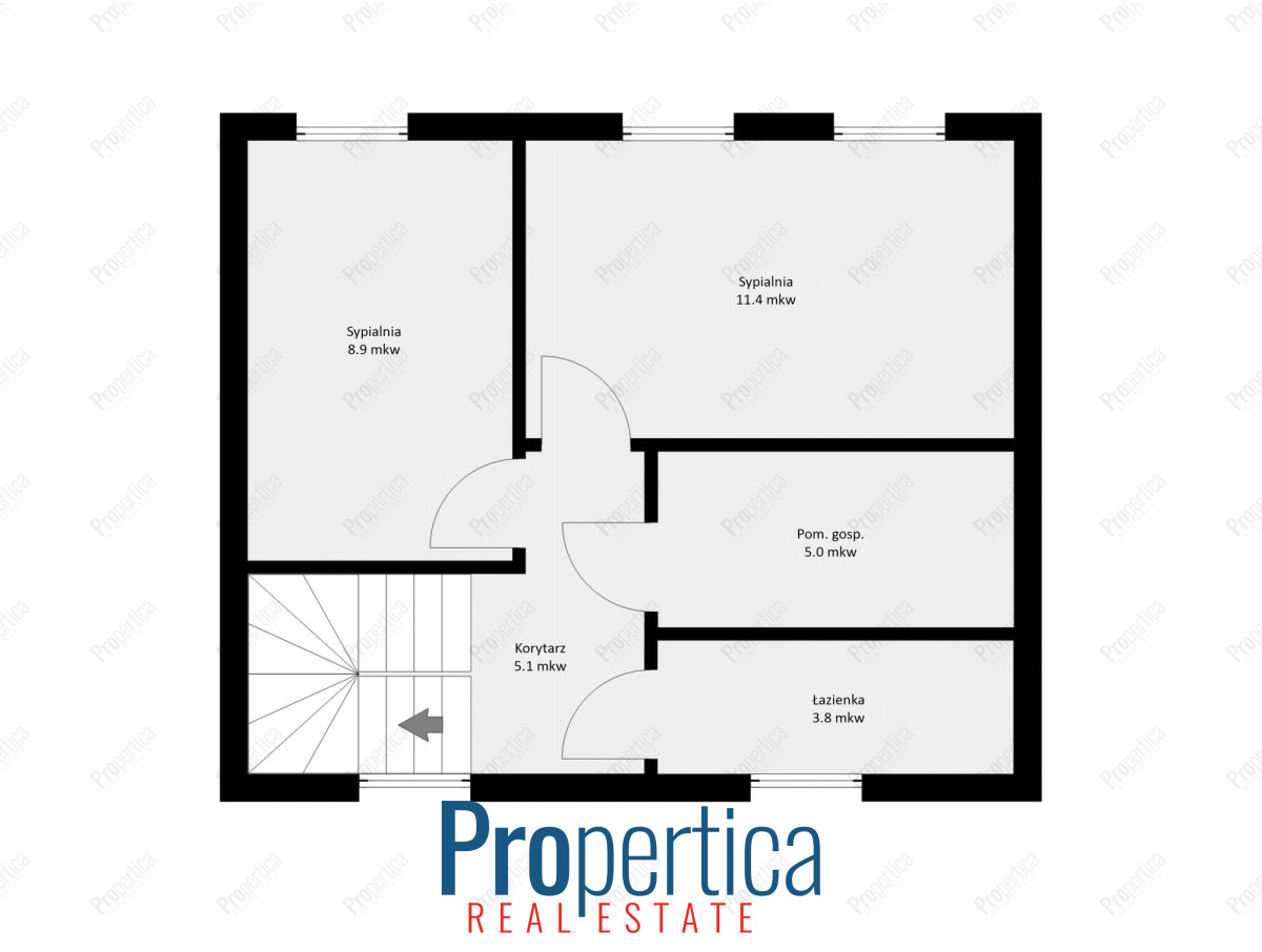 - Piętro: dwie ustawne sypialnie oraz dwie łazienki.