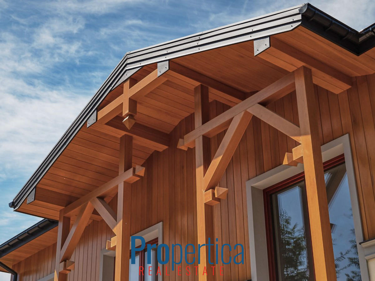 - drewniana elewacja z drewna egzotycznego (eukaliptus), nawiązująca do stylu "świdermajer"