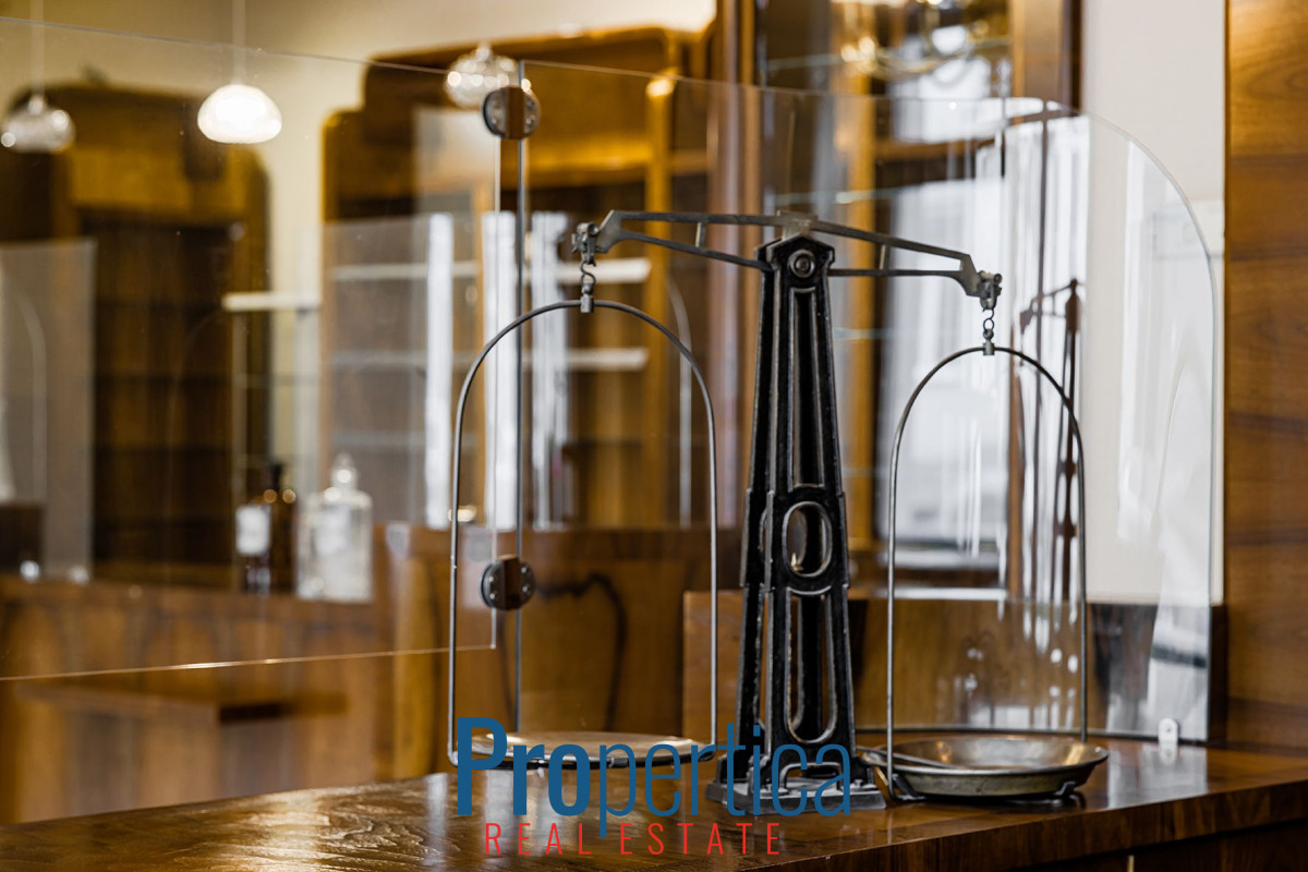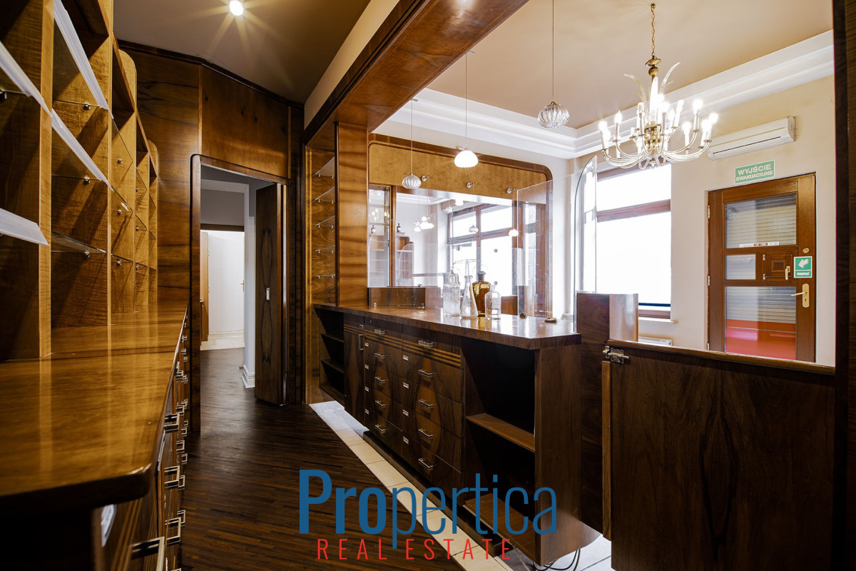 Budynek charakteryzuje się niesamowitym klimatem, co trafnie obrazują zdjęcia po starej aptece. W całym budynku na podłodze jest położony gres.