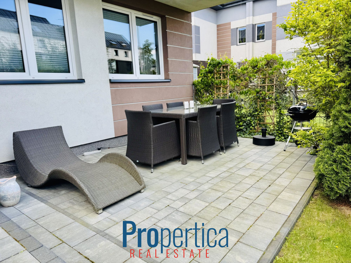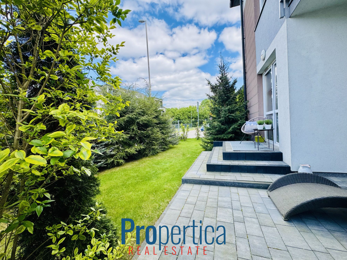 Do mieszkania przynależy zadbany ogródek, który jest oazą zieleni i zapewnia mieszkańcom miejsce do relaksu i odpoczynku.