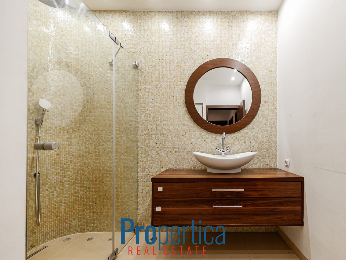 ATUTY NIERUCHOMOŚCI • Przemyślany układ i komfort Mieszkanie jest rozkładowe, pełne naturalnego światła dzięki dużym, drewnianym oknom, które zapewniają doskonałe doświetlenie wszystkich pomieszczeń. Przestronny salon z półotwartą kuchnią (43,9 m²) posiada wyjście na loggię (7,3 m²), dając możliwość relaksu na świeżym powietrzu.