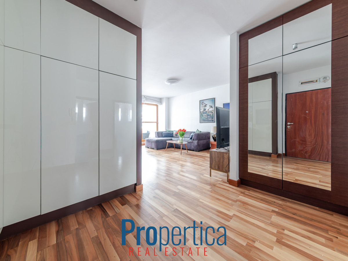 - przedpokój z szafami w zabudowie, które zapewniają dużą przestrzeń do przechowywania