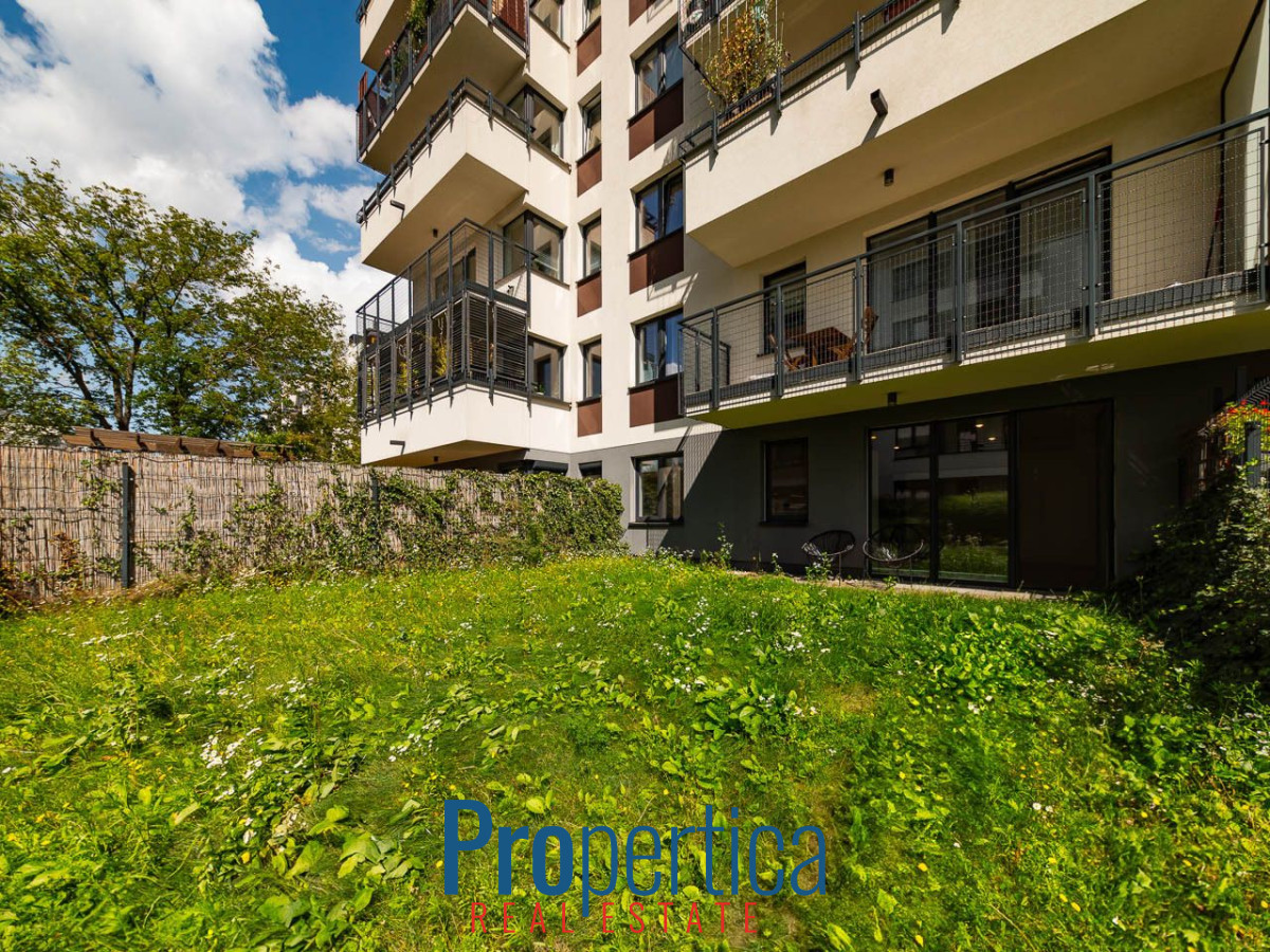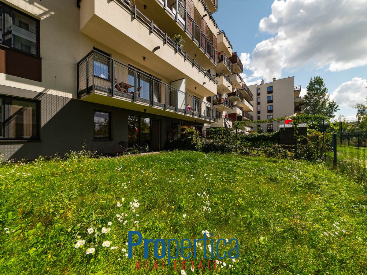 Do mieszkania przynależy duży ogród od strony zachodniej, graniczy z pasem zieleni który jest przeznaczony tylko i wyłącznie pod drogę pożarową,
