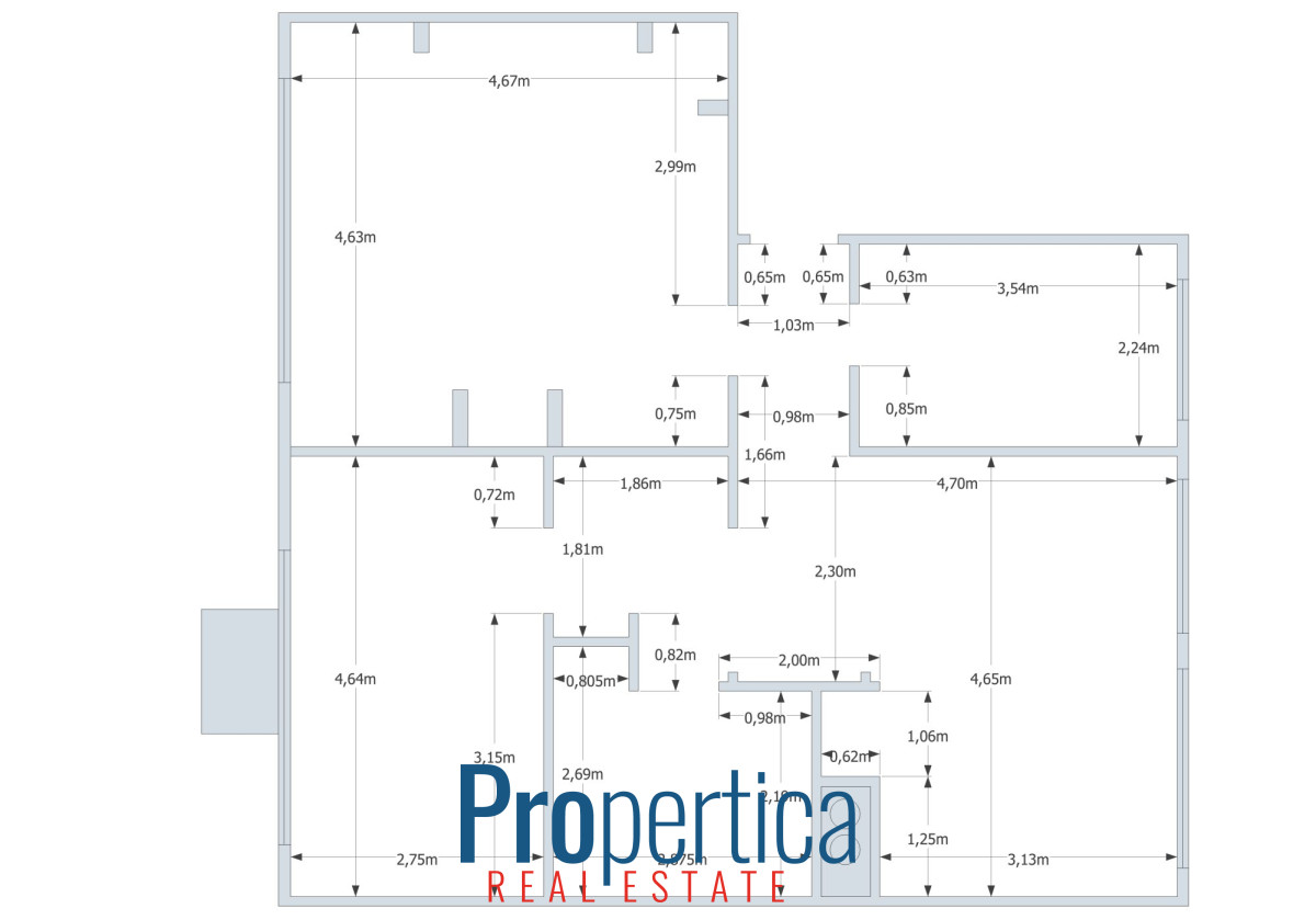 Mieszkanie usytuowane jest na czwartym piętrze i składa się z pięciu nieprzechodnich pokoi, oddzielnej widnej kuchni, łazienki oraz przedpokoju. Jest przestronne i posiada bardzo funkcjonalny układ, który pozwala na pełne i optymalne wykorzystanie jego powierzchni. W łatwy sposób można przekształcić je w trzy albo czteropokojowe. Mieszkanie jest dwustronne, słoneczne i jasne dzięki dużej ilości okien.