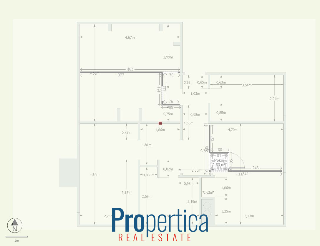 Mieszkanie jest w dobrym stanie, wymaga odświeżenia albo remontu w zależności od preferencji nowego właściciela. W galerii zdjęć znajduje się plan obrazujący obecny układ (5 pokoi) oraz przykładową możliwość aranżacji (3 pokoje).