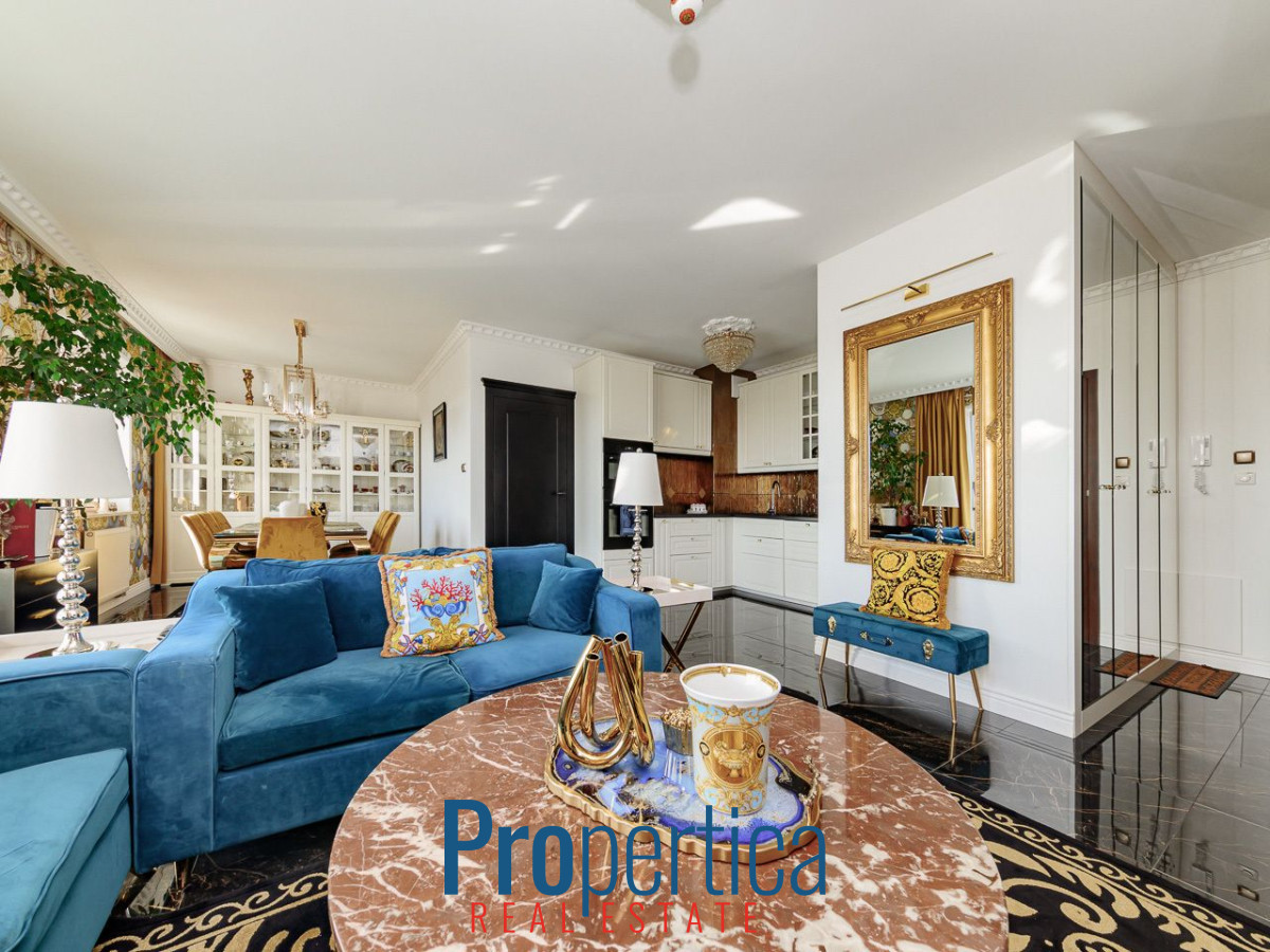 Mieszkanie oddalone jest kilkanaście minut od ścisłego centrum Warszawy.