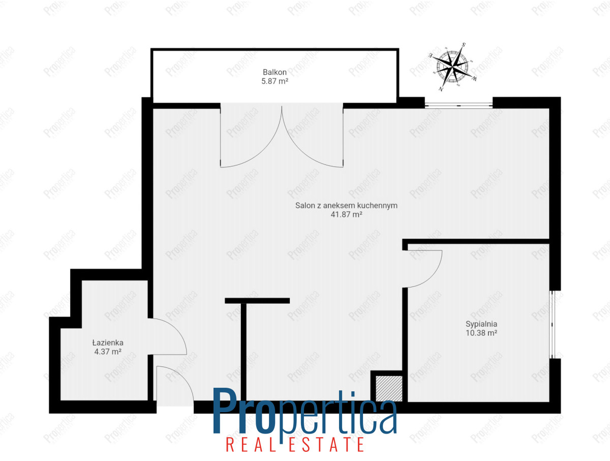 -ustawnego salonu z aneksem kuchennym (41.87m2) i wyjściem na balkon (5.87m2)