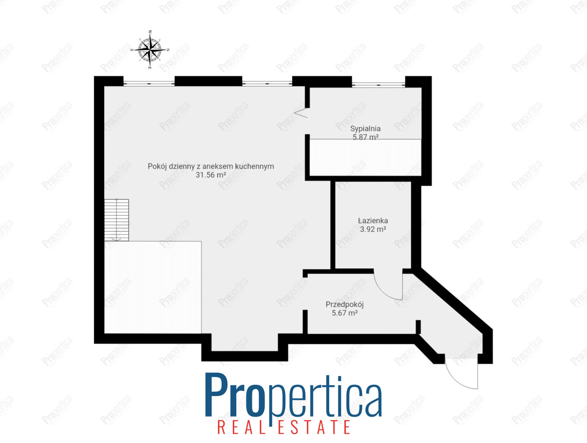Mieszkanie posiada bardzo funkcjonalny układ, który pozwala na pełne i optymalne wykorzystanie jego powierzchni. Składa się z przestronnego salonu z aneksem kuchennym, oddzielnej sypialni, dużej łazienki i przedpokoju. W obu pokojach są antresole (które w razie potrzeby mogą być usunięte). Lokal ma bardzo duży potencjał aranżacyjny. Poczucie przestrzeni potęguje wysokość pomieszczeń, która wynosi ponad 330 cm.
