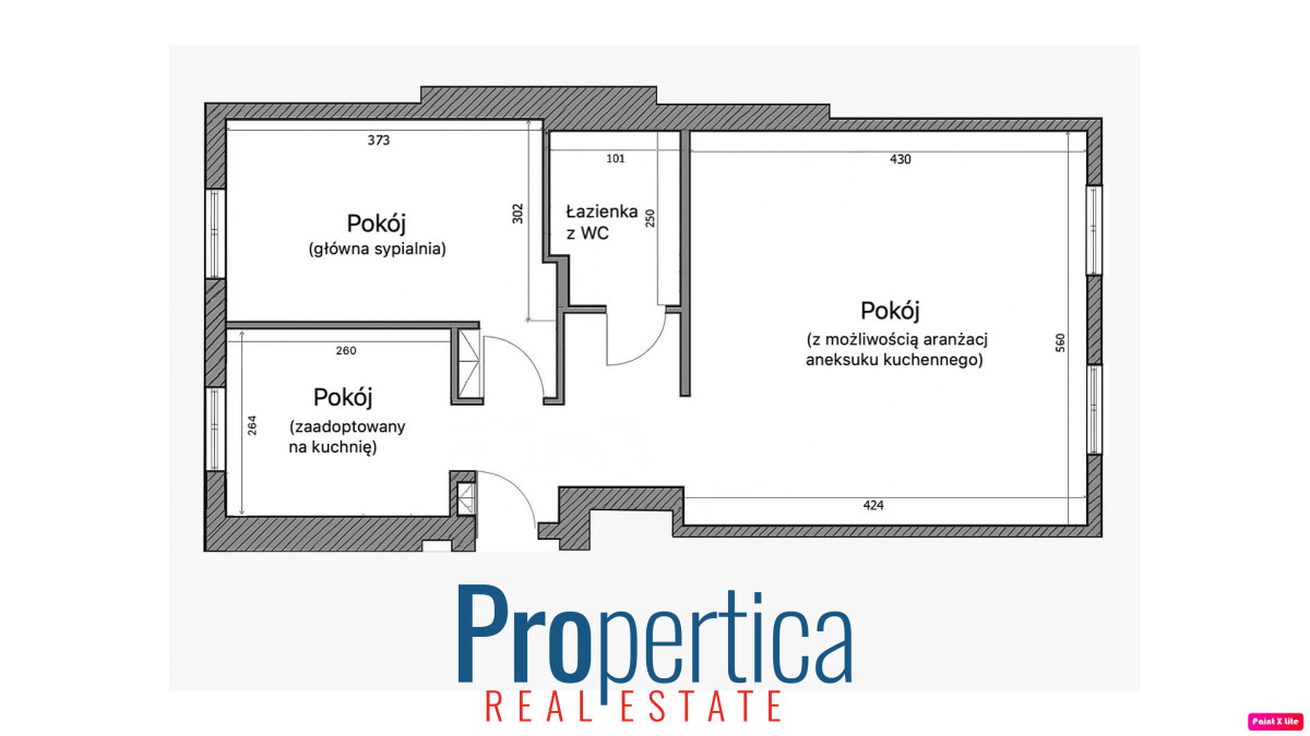 - Liczba pokoi: 2 (sypialnia, salon i oddzielna widna kuchnia)