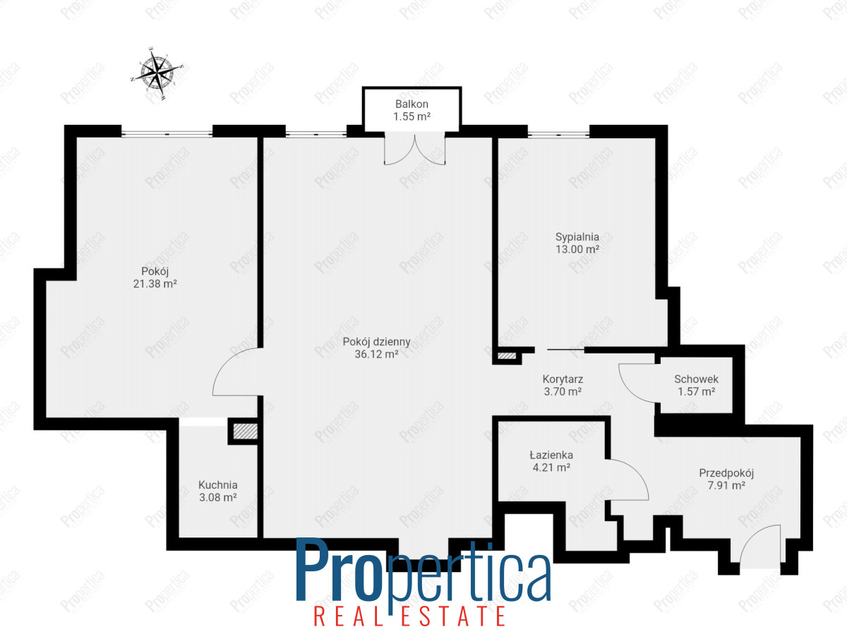 Układ pomieszczeń: - duża powierzchnia typu salon z wyjściem na balkon