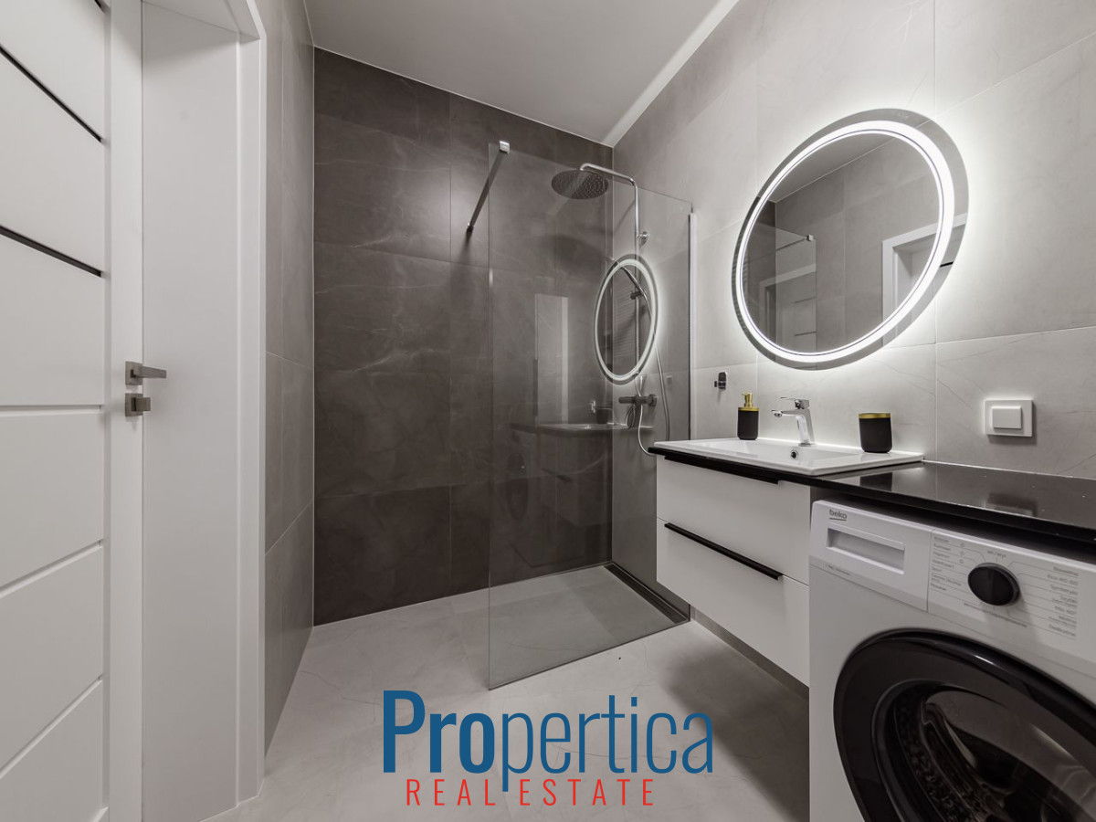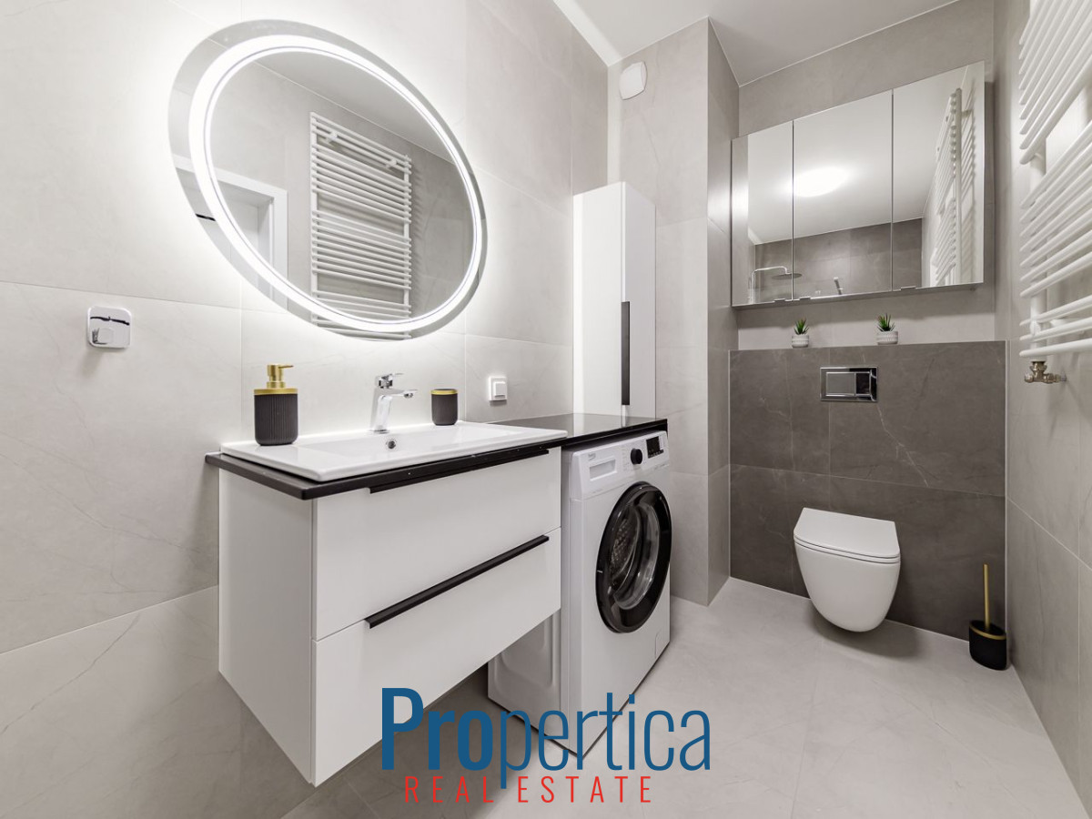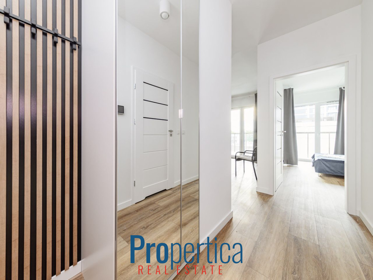 Do wynajęcia nowoczesne, 2-pokojowe mieszkanie o powierzchni 41 m², położone na 6 piętrze z 8 w nowym budynku przy ul. Jagiellońskiej 79 na Pradze-Północ.